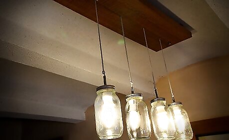 Buy your light bulbs. Make sure you get 25 watts only. so it won't heat it too much and crack the jars. Screw the bulbs into your lighting kit.Make DIY Mason Jar Chandelier Step 11Bullet1.jpg Screw the jars to the lids.Make DIY Mason Jar Chandelier Step 11Bullet2.jpg Repeat the process in making the jar lighting, depending how many you intend to use.Make DIY Mason Jar Chandelier Step 11Bullet3.jpg