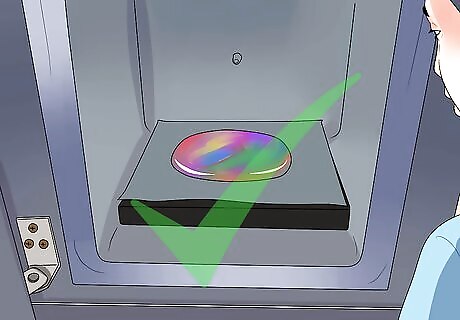 Place the glass pieces into the kiln. Fire up the kiln and begin firing the pieces at different ramps and temperatures to make the glass pieces fuse together and create the bullseye cabochons. If you have an automatic kiln, enter the numbers below and the kiln will do the work. Otherwise, adjust the segments manually. For the first segment, have the ramp at 222C at the target temperature of 677C, and hold it for 30 minutes. For the second segment, have the ramp at 333C at the target temperature of 816C, and hold it for 10 minutes. For the third segment, have the ramp at full at the target temperature of 516C, and hold it for 30 minutes. For the fourth segment, have the ramp at 83C at the target temperature of 371C, and do not hold it. This is a rapid fire. For the fifth segment, have the ramp at full at the target temperature of 80C, and again do not hold it. This is another rapid fire. Allow the fused pieces to cool afterwards. Be aware that it can take hours for it to cool completely.