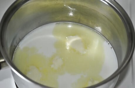 Heat up the water, butter, salt, and pepper. Put the 1/2 cup (118.3 ml) of water, 1 stick (14.8 ml) of unsalted butter, 1/2 teaspoon (4.9 ml) of salt, and 1/2 cup (118.3 ml) of whole milk into a two or four quart saucepan. Stir the ingredients together and bring them to a rolling boil. You can also choose to add a ½ teaspoon (2.47 ml) of dry mustard powder to the mix.