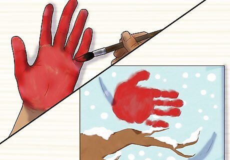 Use orange or yellow paint for the beak. Paint a small triangle where the wrist would connect to the handprint. This will give the appearance of a beak. Rinse the paintbrush after painting the beak.