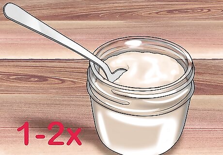 Try using lower calorie dairy products. Many high-calorie and high-fat sauces and dressings are cream-based. Heavy cream, full-fat buttermilk, or sour cream can really hike up the calorie count on some of these smooth and creamy sauces. However, be aware that some companies make up for the lack of fat with extra salt or sugar. Many dressings and sauces get their delicious flavor from higher fat and higher calorie dairy food. The downside of this is that these ingredients come with a higher calorie count. It can be difficult to replace dairy completely, so try using lower calorie dairy products to help cut down on your overall fat and calorie consumption. For example, you can use fat-free sour cream to make dressings or use low-fat buttermilk to make ranch dressing.