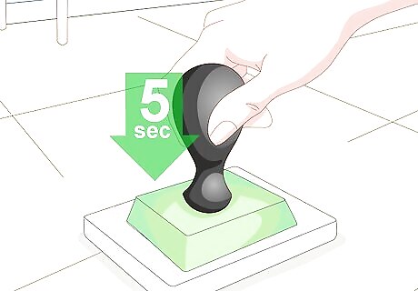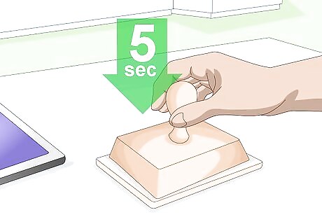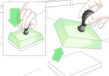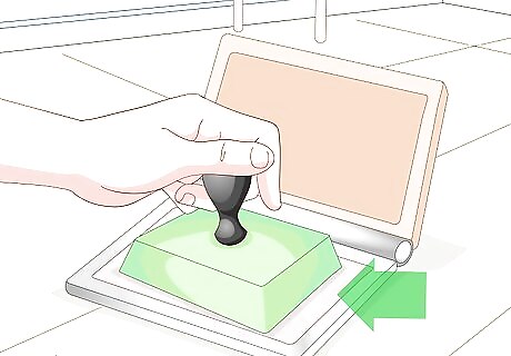 Press the stamp against your tile, hold it for a few seconds, then pull it away. Do not rock the stamp back and forth. Instead, press it straight down onto the tile, hold it for about 5 seconds, then lift it straight back up. If you rock your stamp, you may end up smudging your design.