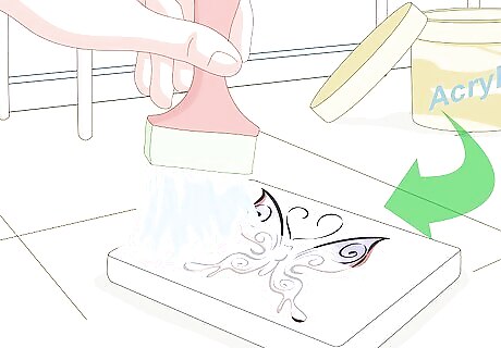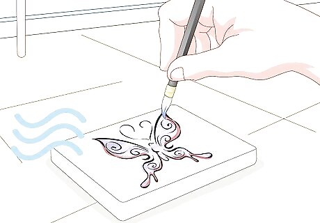 Seal your work, then allow the tiles to dry once again. Give your tiles a light coat of acrylic sealer. Alternatively, you can also use a sealer designed for natural tiles. Let the sealer dry before applying a second coat. The sealer will make the tile less-porous. If you have a simple image, consider coating just the image with a squeeze-on or brush-on sealing glaze.