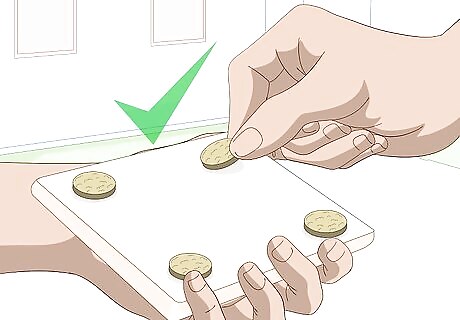 Add a small or medium-sized felt pad to the back of each tile. You will need four felt pads, one for each corner. You can also use rubber or cork pads. Alternatively, you can also hot glue a 4-inch (10.16-centimeter) square cut out of a thin sheet of cork to the back of your tile. These will prevent the tiles from scratching up your table or counter.