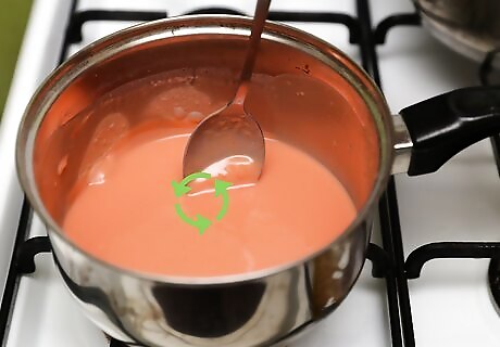 Cook the mixture. Place your saucepan on medium heat. Carefully stir the mixture as it cooks; if it sticks to the bottom of the pan, it may burn. Let the mixture cook for about five minutes. If it starts to look too dry, add a splash of water to the mixture. After about five minutes the mixture will start to roll into a large ball when you stir it. Transfer the ball of dough to a plate to cool. If you want the mixture to cool quickly press it into a pancake shape with your spoon. This will allow the excess heat to escape the dough. If you feel like your dough is too sticky, sprinkle some flour over the dough and mix it in.