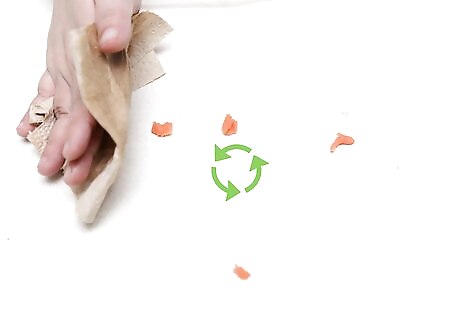 Clean the playdough. If your child gets playdough on a hard surface, simply wipe the dough away with a damp paper towel. If needed, spray the area with a household cleaner before wiping the dough away. If the dough gets on your carpet, allow the dough to completely dry. Next, vacuum the affected area until all of the crumbs disappear. Playdough and Kool-Aid are difficult to remove from untreated wooden surfaces. If possible, cover the surface with newspapers or a plastic tarp.