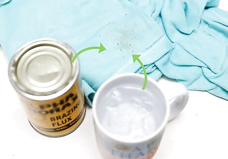 Remove Kool-Aid stains from clothing. First, spray the stain with ice cold water. Next, cover the stain with a thin layer of borax. Using an old toothbrush, gently work the borax into the fabric. Blot the area with a clean cloth. Repeat the process until the stain has disappeared. Wash the clothing in cold water and air dry the clothing. Borax is a hazardous chemical and should be handled with care. Wear gloves when you use it and keep it out of the reach of children. To avoid this problem altogether, wear old clothing when cooking or playing with Kool-Aid.