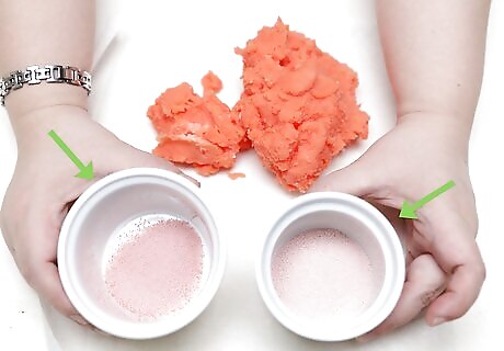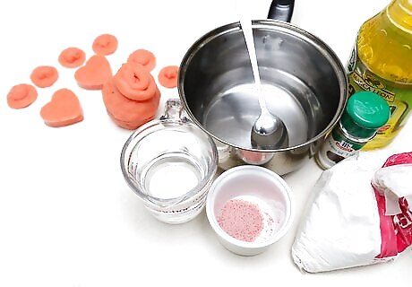 Make more than one color. If you want to make multiple colors, cook the dough in batches. You can either make a full batch of each color or split one batch into multiple colors. For example, you could make two colors with the same batch of dough by halving the ingredients before cooking them. First, completely cook the first half-batch. While it’s cooling on a plate cook the second half-batch. Wash the saucepan between batches to prevent color contamination.