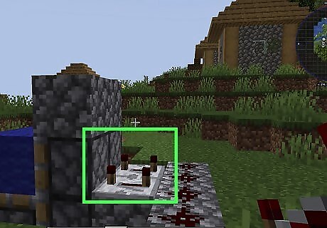 Add Stone, Dirt or Grass to the four Sticky Pistons.