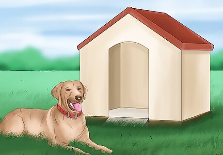 Provide your dog shelter. If your dog goes inside and outside, or simply stays outside, it’s important that she have a safe shelter from the elements at any time of year. Dogs are very sensitive to temperature and they experience the same discomfort in extremes that humans do. Providing a heated space in the winter and a shaded spot in the summer can go a long way in keeping your dog safe and healthy.