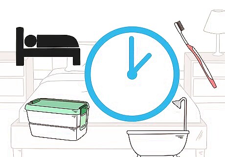 Get ready for bed at the same time every night. Don’t wait until you start to feel sleepy, as this may keep you up longer than you want to stay awake. Additionally, the act of getting ready for bed may make you more alert, causing you to stay up later than your desired bedtime. Set a reasonable bedtime goal that works for your schedule.