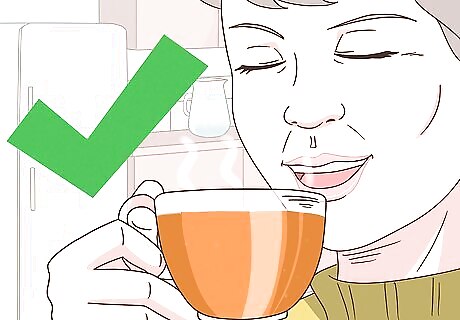 Drink some herbal tea. While the jury is still out about whether or not herbal tea actually helps people become sleepier, studies have shown that it does help people feel more relaxed as they drink it. This is equally important when getting ready for bedtime. Try choosing a tea that contains chamomile, lavender, peppermint, spearmint, or lemon grass. Make sure you choose an herbal tea with no caffeine.