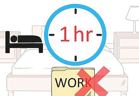 Stop working at least an hour before bed. It’s important to give your brain a chance to slow down from the day before you try to make yourself go to bed. For this reason, you should stop working (whether it’s job-related or school-related) at least one hour before bed so you can unwind a bit. This also means that you should quit working on homework or other projects at least one hour before you plan to go to sleep.