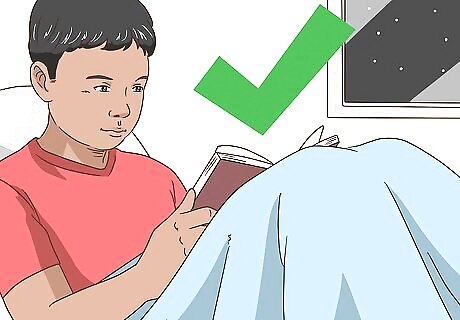 Read in bed. Reading in bed is one of the best ways to relax and destress yourself after a long day. Immersing yourself in another world allows you to forget the worries of your own life and start relaxing your body and your mind as your prepare yourself for sleep. You should start to feel more relaxed and ready for bed after as little as six minutes reading. The genre doesn’t matter. Even reading a suspenseful story will help you relax before bed.