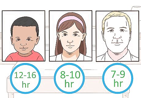 Know how much sleep you need. Different people have varying sleep needs. For example, babies need much more sleep each day than adults. And older adults require even less sleep than younger adults. Knowing how much sleep you need each night will help you calculate when you need to set your bedtime. Newborns typically need 14-17 hours per day. Infants typically need 12-15 hours of sleep per day. Children need 9-11 hours of sleep per day. Teenagers require 8-10 hours of sleep per day. Adults typically need 7-9 hours of sleep per day