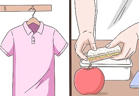 Prepare yourself for the next day. In an effort to reduce your stress at bedtime, it might be beneficial to spend a little time preparing yourself for what you have to do in the morning. Feeling ready for the next day will help you relax and fall asleep more quickly. You can do things like picking out your outfit for the next day, packing your lunch, catching up on correspondence, reviewing notes for a big meeting, creating a to-do list, or organizing your purse/briefcase.