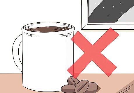 Avoid caffeine later than six and a half hours before bed. Caffeine is widely known to be a stimulant, often causing people to feel jittery or more alert. Ingesting caffeine before bed, even if you are a regular coffee drinker, can make you feel more alert, delay your sense of sleepiness, and keep you from getting to bed on time. This means avoiding beverages like coffee (even decaf coffee), soda, and non-herbal teas. Chocolate also contains measurable amounts of caffeine. It’s a good idea to skip the chocolate before bedtime as well.