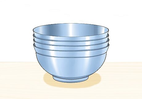 Use full dish sets. Dishes that fit into one another will help your kitchen stay organized, and will save plenty of space in the dishware cabinet. Plus, there’s nothing that looks as satisfactorily well-organized as a stack of perfectly nested mixing bowls. Modernity has brought with it some incredible inventions, one of which is the bowl-plate. These are exactly what the sound like - about the size of a dinner plate, but with a deeper well and edges similar to a bowl. Having a few of these nearly makes classic bowls and plates obsolete.