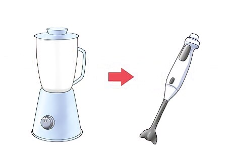 Downsize your appliances or store them. In especially small spaces, appliances can take up way too much of your kitchen. For instance, if you have a full size-blender, opt for an immersion blender instead. These are also easier wash - which is especially advantageous if your kitchen lacks a dishwasher. Consider getting an all-in-one kitchen machine. Some, for instance, even come with attachments that will allow you to make pasta and ice cream, and juice whatever fruits and veggies you can cram into it. While these attachment are only necessary if you intend to use them, they’ll take up much less space than a handful of separate appliances.