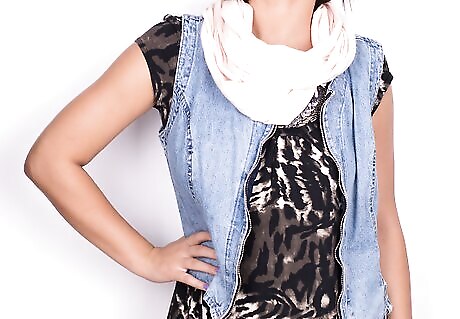 Use varying sizes of patterns. One of the patterns should be thinner or smaller. The other should be medium or large. If you're wearing a flowered scarf with a striped shirt, the shirt would look best if it had thinner stripes, and the flowered scarf had medium-sized flowers, scaled to the size of the scarf. The contrasting sizes help put the focus on the accent of this outfit. If the stripes were big, the outfit would look wacky and disproportionate.