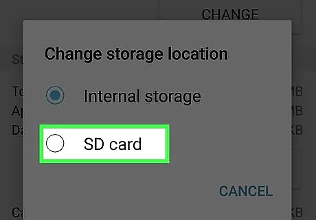 Tap Change. You'll only see this button (at the top of the screen) if the app can be moved to an SD card. If you don't see it, the app cannot be moved.