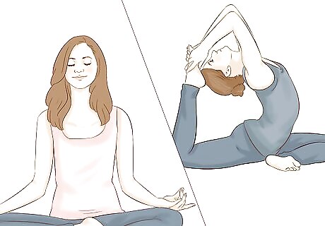 Practice meditation, yoga, or Pilates. So you may think that these three activities are for your parents, or washed-up hippies, but there's some value in connecting your brain and your body in a single exercise. All three of these activities strive to do this. The person who is more in touch with his or her body is less likely to abuse it by taking drugs. There are several different kinds of meditation. Maybe the simplest meditation exercise is closing your eyes, breathing in and out deeply, and trying to gain awareness of each part of your body — all at once. This is sometimes called awareness mediation. There are dozens upon dozens of kinds of yoga. There's Hatha yoga, Bikram yoga, Ashtanga yoga, Vinyasa yoga, not to mention many more. Explore different practices with different teachers. Each has its unique set of poses and breathing practices. Pilates was developed by a German physical-culturist in the first half of the 20th century. It is a body condition routine that emphasizes core strength as well as spinal and pelvic alignment. Many Pilates enthusiasts report feeling much better after their workouts. When you feel good already, what's the use in taking drugs?