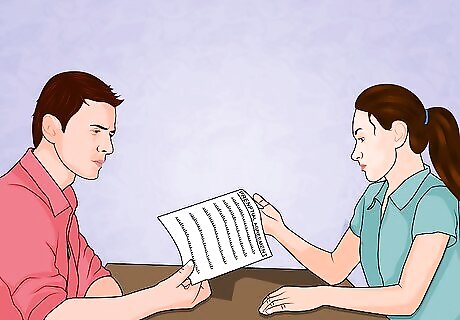Make a list of each person's assets, debts, income, and expected future gains. Be sure each person fully and accurately discloses all relevant financial information. Not only should you do this to be honest with each other, but failing to do so could render any prenuptial agreement invalid if challenged in court. You will use this information to draft your prenuptial agreement. When it doubt, disclose.