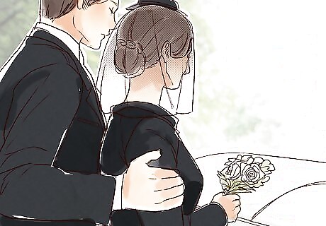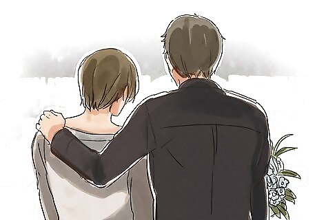 Attend the funeral. Many ceremonies are held to acknowledge the ending of a journey. Funerals serve a purpose for those who have passed away, but also for those still living. A celebration of life is healing in many ways. You will be there to support your mother, friend or colleague, but you will also be experiencing your own healing. Make sure you have a supply of tissue. This is an emotional time and tears will fall. Ask her if there is anything she would like to say or have someone say about her spouse. Monitor your mom’s behaviors to ensure she doesn’t get too overwhelmed. If there is a reception after the funeral she will be facing a lot of well-wishers. Take a break when necessary by removing her from the crowd for a short period of time. Some women are very strong in these instances, but you need to keep an eye on her either way.