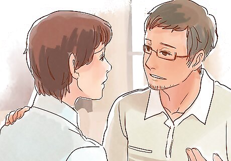 Contact her after the passing of the loved one. In times of crisis people gather to provide support to one another. When someone has experienced a profound loss, it is important to show her she is not alone. Sitting with the person and actively listening to her tell you what happened and acknowledging her feelings can be extremely helpful. You are there to comfort and reassure her, which will include listening, talking and calming the situation in any way. Once you arrive, give her a healing hug, and to anyone else who needs one. Some hugs call for a longer duration. Hug the person for as long as she needs. If you live far away from your mother or friend, contact her by telephone to determine if your presence is needed. Rely upon your intuition or the suggestion of a family member whether you should make arrangements to be by her side. If you are an acquaintance, contact the bereaved within a reasonable amount of time, which may be within the first 24-48 hours and two weeks. Make sure you acknowledge the passing to avoid being thought of as forgetting to do so, or being insensitive.