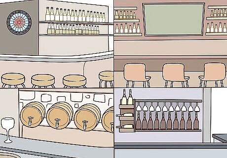 Choose a theme for your bar. It doesn't have to be an in-your-face, without a doubt theme. Subtle can work, too, as long as you have other factors working in your favor. But it pays to know what your bar is all about. So, what will it be? Neighborhood bar. This is where Chuck and his buddies congregate after work on Wednesdays, and perhaps play darts or even cash checks. (Well, probably not.) Neighborhood bars are probably the most popular types of bars, and are perfect for small-scale entertainment. Sports bar. This is where die-hard fans and curious fans alike gather to watch the game on Sunday. Expect to offer food in these sorts of bars, and to have a television viewable from every seat in the house. Brewpubs. This is where discerning beer drinkers go to get their fix. You'll probably have lots of niche or local beers on tap, and some brewpubs even make and offer their own beer on the premises. Brewpubs that manufacture a popular beer can capitalize on their product in several different ways. Specialty bars. This is where you'll find intimate wine bars or specialty martini bars. Specialty bars either have a décor theme, such as a pirate theme, or a liquor theme, such as rum — or they combine it into an amazing pirate-themed, rum bar.