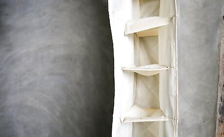 Prop the shoe rack up on a wall. You can put this in your closet or in your room. The beams should run parallel to the floor.