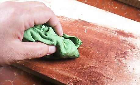 Apply a stain. You can use a standard brush-on stain, but if you want something quick, try spraying on a stain instead of brushing it on. When brushing on stain, apply it in long, even strokes with a wide brush. Use an ample amount, and then wipe away any excess once the stain has absorbed. When spraying on a stain, apply it in even coats. Read the directions to find out how far away you should hold the can from the project when spraying. Use light coats, and wait for each coat to at least partially dry before applying the next one.