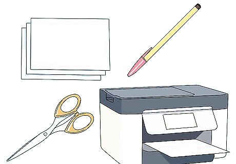 Get some 4X6 note cards, a pen, and access to a computer with a color printer. You may also need a pair of scissors.