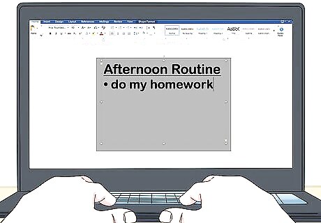 Make another text box. Call it Afternoon Routine. You should list everything you need to do when you get home from school. Don't forget your homework.