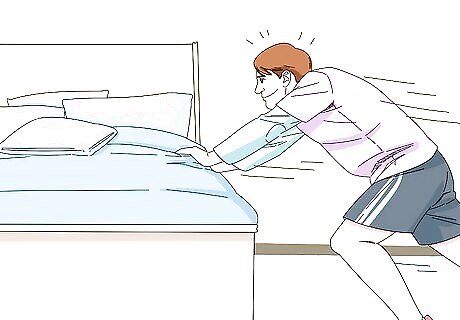 Start in one corner of your room. A good place to start might be the bed. Just make the bed and arrange the pillows. There, a part of your room is tidy already, and it probably only took a minute or two!