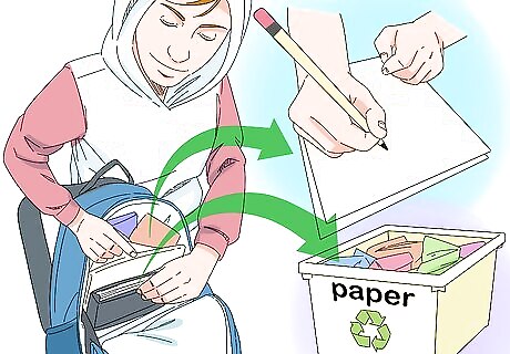 Go through your school binders and your backpack. Clean out all the papers you don't need and either file them for studying for exams or recycle them. (this is easiest at the end of a quarter/semester, but can be done anytime).
