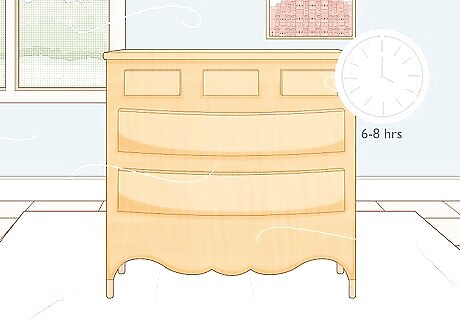 Let the furniture dry completely after the first coat of paint. The amount of time your paint will take to dry depends on the type of paint you choose. Most paints need about 6-8 hours to dry. Chalk paint, which sticks very well to unsanded wood, only takes about 30 minutes to dry. Check your can of paint to see how long the recommended drying time is.