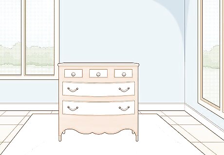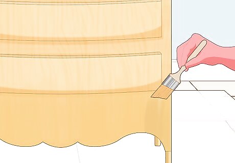 Place the furniture on a drop cloth. This will keep your floor clean as you paint if you’re painting inside. You won’t have to worry about paint drips and dribbles. If you’re painting outside, a drop cloth will protect your furniture from grass and dirt. A plastic tarp makes a good, affordable drop cloth.