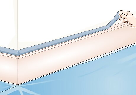 Tape off any parts of the wall that you don’t want to paint. Place strips of tape along the outer edges of the baseboards and trim, as well as any wall fixtures, light switches, and electrical outlets. That way, you can focus on applying the paint without having to worry about getting it anywhere it’s not supposed to be. Painter’s tape comes in various widths, including 0.94 in (2.4 cm), 1.41 in (3.6 cm), and 1.88 in (4.8 cm). If you’re looking for a one-size-fits-all tape, medium-widths like 1.41 in (3.6 cm) and 1.88 in (4.8 cm) tend to work well. They’ll allow for neat edge work without covering too much of the surface you want to paint or too little of the trim you want to protect.