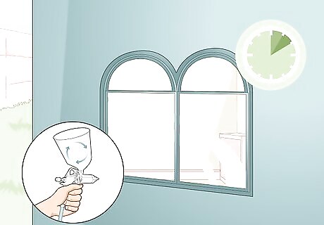 Let your paint dry for at least 1-2 hours before applying additional coats. Sprayers produce thin, even coats that dry much faster than the heavy coats created by brushes and rollers. After a couple of hours, the paint on your surface should have cured enough to withstand the elements or accept a follow-up coat or quick round of touch-ups. Keep in mind that environmental factors like moisture and drastic fluctuations in temperature can increase the drying time of exterior paints. To avoid drips and other inconsistencies, it's best not to apply more than 2 coats total.