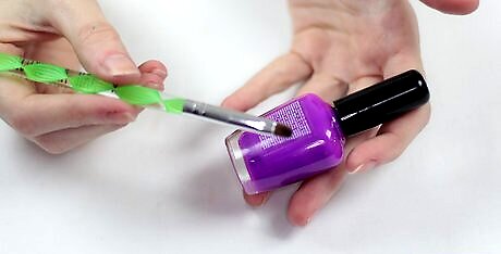 Try a color blocking look. You can divide your nails into two solid colors for a festive Mardi Gras nail look. To do this, you can either use tape or a nail art strip to divide your nails in half diagonally. Then, paint one half of all of your nails with one color, let it dry, and then paint the other half with the other color. For example, you could paint your nails half purple and half green. You could even use a gold nail polish liner pen to draw a line over the diagonal divide between the two colors.