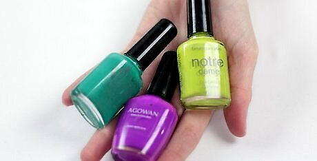 Choose your colors. Purple, green, and gold are the colors of Mardi Gras, so work with these colors as you design your nail look. Avoid pastels and instead opt for bold purple and green nail polish. You can also use a golden yellow in place of gold if you prefer. Painting your nails in alternating colors is an easy way to get a Mardi Gras nail look. For example, you could alternate between purple, green, and gold.