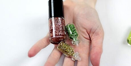 Opt for glitter. Glitter is another great option for Mardi Gras nails, especially if you are short on time or don’t want to attempt any nail art. Try choosing a glitter with flecks of gold, purple, and green, or look for a solid glitter nail polish in one of these colors. An easy Mardi Gras nail look is to paint all of your nails with gold glitter nail polish. They will be shiny and fun without a lot of fuss.