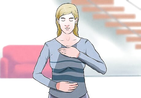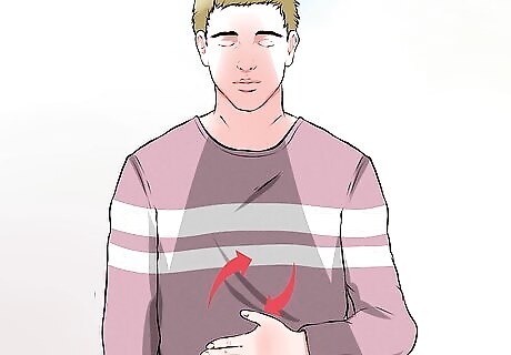 Put one hand on your abdomen and one on your chest. The goal of deep breathing in general, and soft belly meditation in particular, is to breathe with your diaphragm. That means that your chest should remain relatively level while your belly inflates and deflates. Putting hands on your body can help you gauge whether you're breathing properly. The hand on your chest should remain stationary. The hand on your abdomen should rise and fall with each breath.