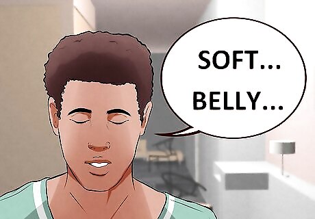 Engage in belly breathing. Soft belly breathing requires you to inhale slowly, fill your abdominal area completely with that breath and then exhale slowly. As you inhale each breath, focus on expanding your belly and loosening any tension there. Try to fill your lungs from the bottom to the top, rather than engaging in shallow chest breathing. Use the muscles in your abdomen to force the old breath out from your lower belly until your lungs are completely empty. Repeat the process as many times as desired.