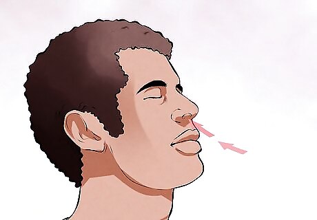 Breathe in slowly through your nose. Once you're in a comfortable position, you'll want to focus on inhaling slowly and deeply. Many experts recommend inhaling through the nose, but you can inhale through your mouth if you're more comfortable breathing that way. Let your belly fill with air. It should rise and expand like an inflated balloon as you inhale. Make sure the air goes down deep into your abdomen and eventually fills to your upper chest area, but don't concentrate your breathing in the chest. This will cause shallow chest breathing, which is not the goal of this meditation.
