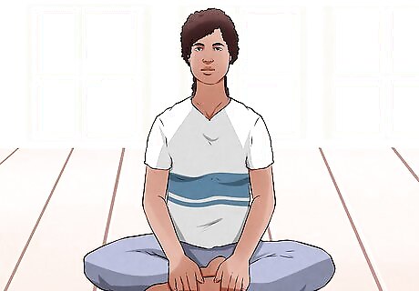 Close your eyes. Closing your eyes can help you focus on the meditation and tune out environmental distractions. However, not everyone is comfortable closing their eyes during meditation, especially if they're in an unfamiliar or potentially unsafe environment.