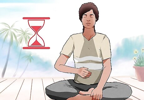 Maintain a regular belly breathing schedule. The best way to get more comfortable with this or any other new habit is by making it a part of your regular schedule. Practicing every day will help you get more comfortable with belly breathing and meditation in general. It will also help you relieve stress and feel more centered in your day-to-day life. If possible (and if you're comfortable doing so), try to set aside at least 10 to 20 minutes to practice every day. If that's too much, you can aim for 5 to 10 minutes of practice time each day. As you get more comfortable, try to increase the number of times you practice each day. Aim for three to four meditation sessions each day, or however much time you can comfortably set aside.
