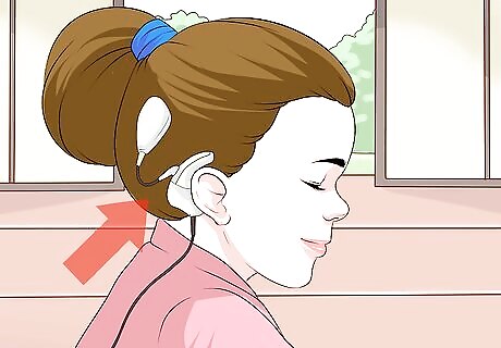 Get a hearing loop to tune into most public sound systems. Hearing loops are audio induction systems sometimes found in public meeting spaces such as auditoriums, town halls, houses of worship, and theaters. With a special headset, you can tune into the system to hear what is being said. They can also be used to listen to televisions or telephones. Hearing loops are typically installed into sound systems; they will not help you pick up on everyday noise outside. Hearing loops are more commonly found in public meeting areas than FM systems or infrared systems. Receivers are typically worn in the ears. They also come as headsets. If you have a hearing aid or cochlear implant with a telecoil, you already have access to hearing loops. Just flip the switch on so that you can access the induction system. Personal hearing loop devices can cost around $300 on average.