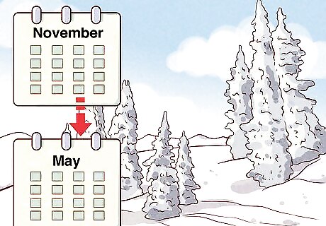 Schedule your ski trip between November and May. Ski season in Colorado tends to run between November and May, though this range depends on the snow-fall that year. Plan your trip in January, February, or March if you want to count on reliable snowfall and open resorts. Booking a trip in November and the first half of December can be risky, but it is a risk that may pay off. Skiing in Colorado during this period helps to avoid crowds and get better deals. Hotels and lift tickets are at their lowest rates during this time. The risk is that there may not be any snow. Early December is more likely to get snow than November. Like November and December, the months of April and May offer fewer crowds and better deals. Unfortunately, these months in Colorado tend to be wet, which can cause resorts to close. You are probably in the clear when traveling to Colorado in the first week of April, but any time after that is a risk.